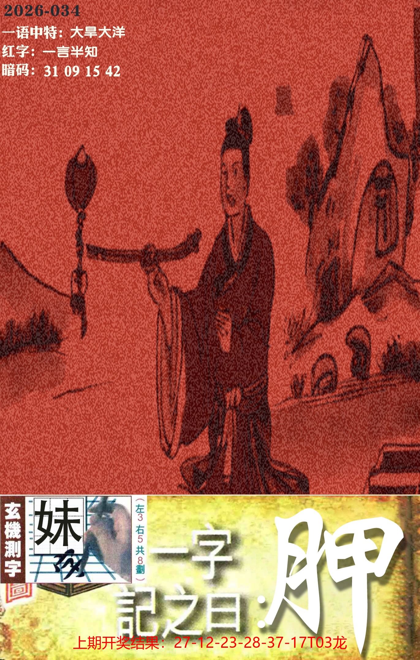 034期:平特一尾 【五尾有钱】开:888 准 |